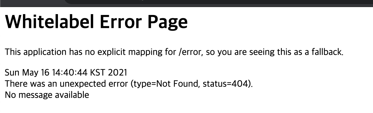 기본적으로 Springboot는 모든 에러를 적절한 방식으로 처리하는 mapping을 제공하고 있어요.