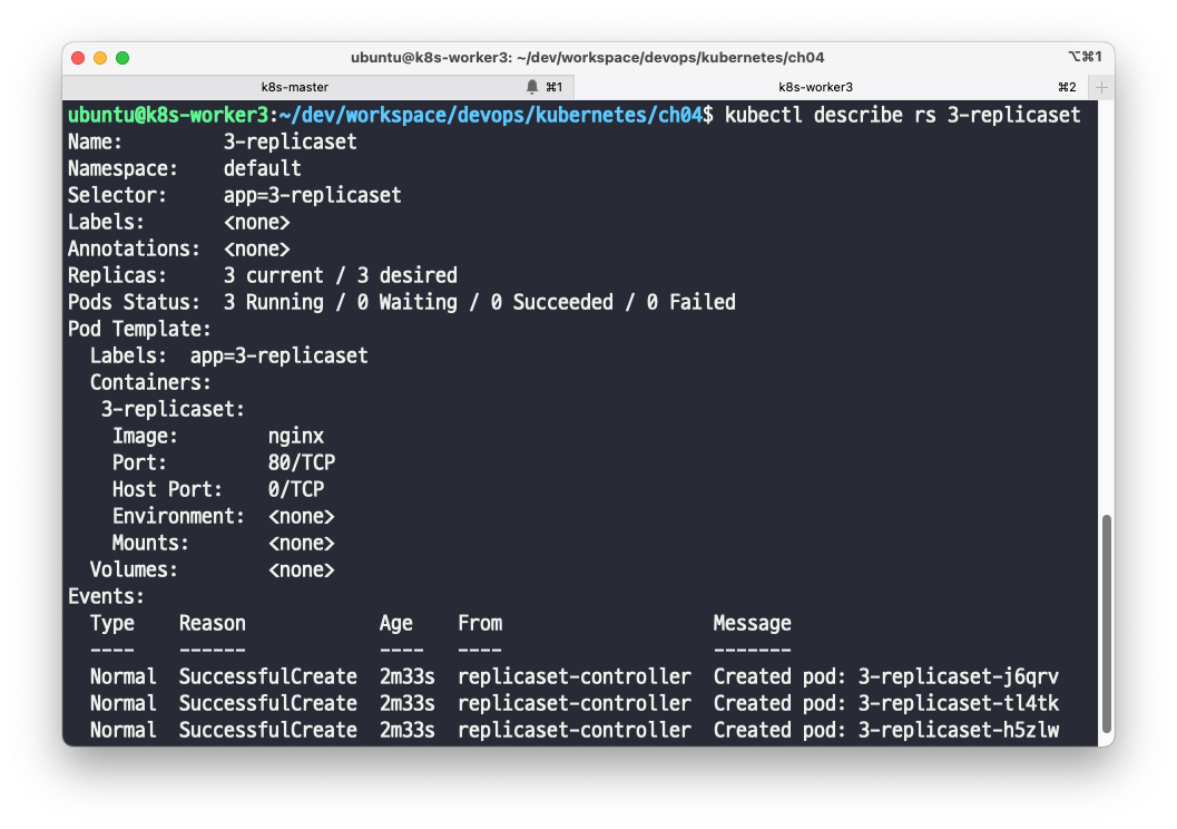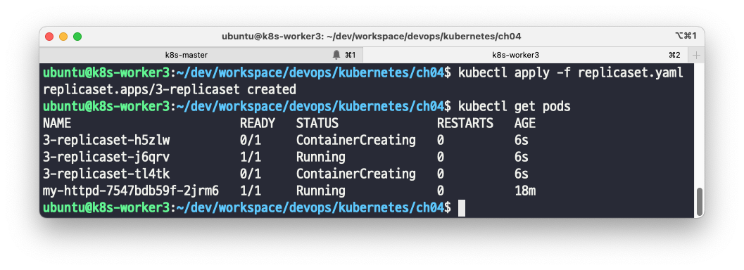 $ kubectl apply -f replicaset.yaml